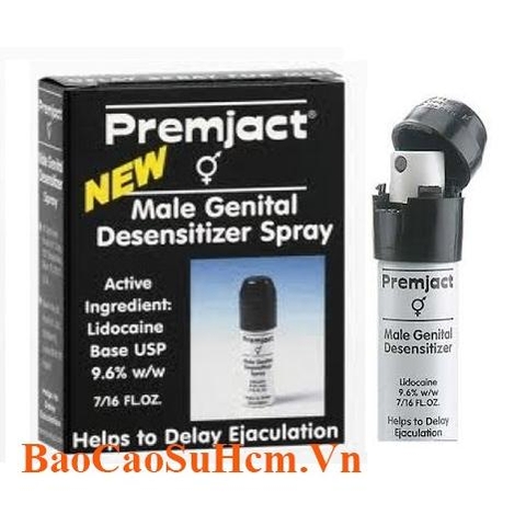 Thuốc xịt trị xuất tinh sớm Premjact Male Densensitizer Spray chứa Lidocain 9,6% gây tê cục bộ trên lớp da bên ngoài đầu dương vật giúp nam giới kéo dài quan hệ lâu hơn. Nó cũng chứa nhiều thành phần phụ gia khác giúp duy trì độ cương cứng của dương vật, làm giảm tính nóng rát của chất gây tê...