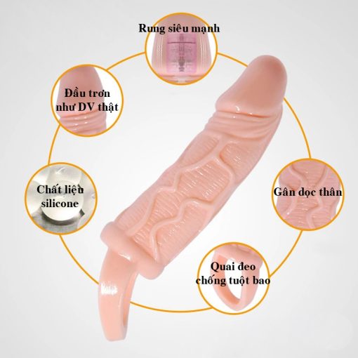 Điểm ấn tượng của bao không chỉ về mặt thiết kế, nó ăn đứt những dòng sản phẩm cùng loại đó chính là có thêm cục rung ngay phần đầu, Vừa giúp tăng kích thước của dương vật, vừa rung massage kích thích âm hộ cho người nữ, mà còn vừa đảm bảo tránh thai ngoài ý muốn. Sản phẩm làm từ chất silicon y tế mềm mại, độ đàn hồi cao nên dùng lâu vẫn không bị nhão, có thể sử dụng được nhiều lần.